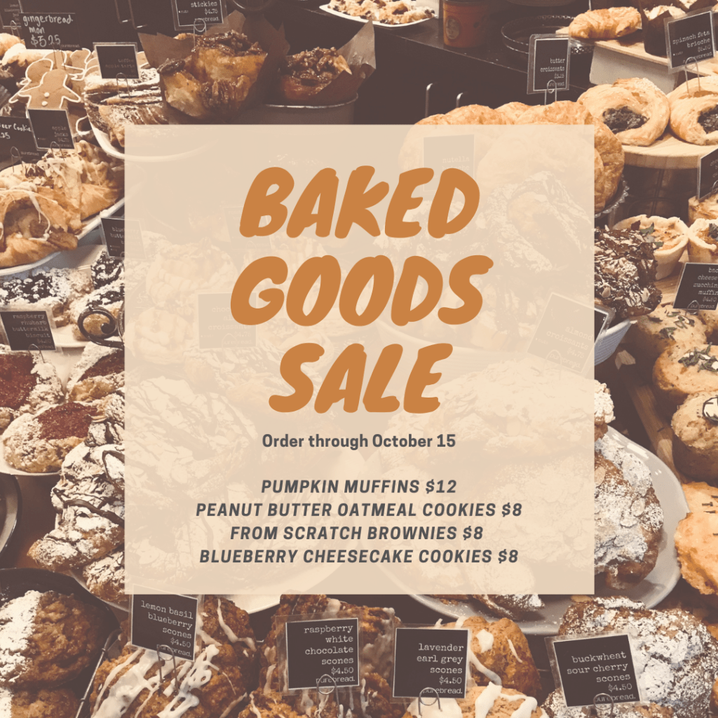 Now through October 15, Take and Bake is hosting a home made baked goods sale. Goodies include pumpkin muffins ($12/dozen), peanut butter chocolate chip oatmeal cookies ($8/dozen), from scratch brownies ($8/pan) and blueberry cheesecake cookies ($8/dozen).